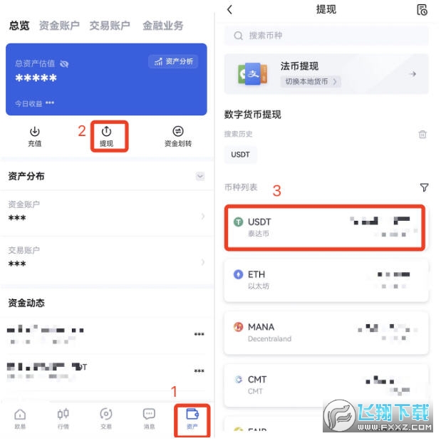 1.链上提现:打开欧易APP,选择【资产】栏—【提现】—选择币种【USDT】。