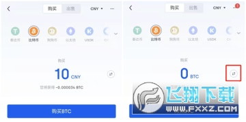 第二步:要购买的币种为BTC,输入需要购买的金额。点击如图所示的按钮即可切换成按币种数量购买。