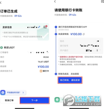 订单确认之后,点击【下一步】;及时打开手机银行APP/支付宝/微信,输入对方账户信息进行付款,完成之后,点击【我已转账,通知卖家】。对方核实款项后,您所购买的数字资产就会发放给您,可以在【资产】栏查看。