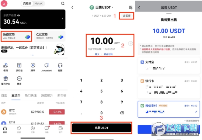 以USDT为例:打开欧易APP首页,点击【快捷买币】—【去卖币】—输入【卖出数量】或【金额】—【出售USDT】—【确定】—选择收款方式,【确认出售】,按要求输入谷歌验证码。