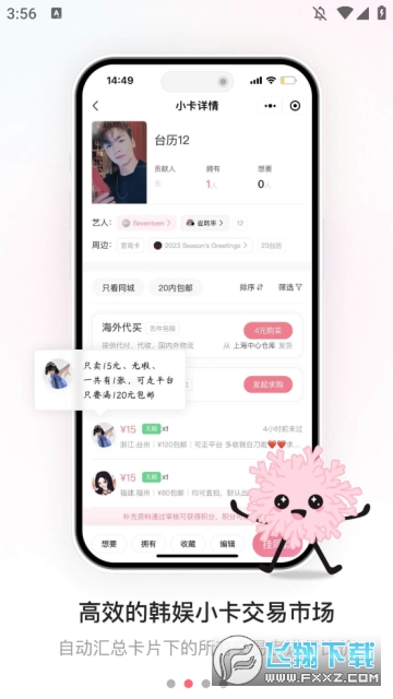 珊瑚集市韩语明星小卡平台是一款韩娱明星小卡交易平台,也是最权威的小卡交易平台,出售海报生成,无需拍照拼图,用户可以尽情购买、出售和交换自己喜爱的KPOP明星的小卡,致力于为用户提供丰富多样的商品选择,里面有着超多的明星小卡,使用更加的方便!
