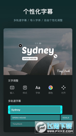 「视频添加字幕」对视频分段添加字幕,字体样式可灵活定义,还有网红特色字体供您挑选。