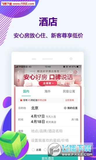 2,酒店:支持国内海外百万余家酒店预订;领大额礼包,享优惠低价,兑专属权益;