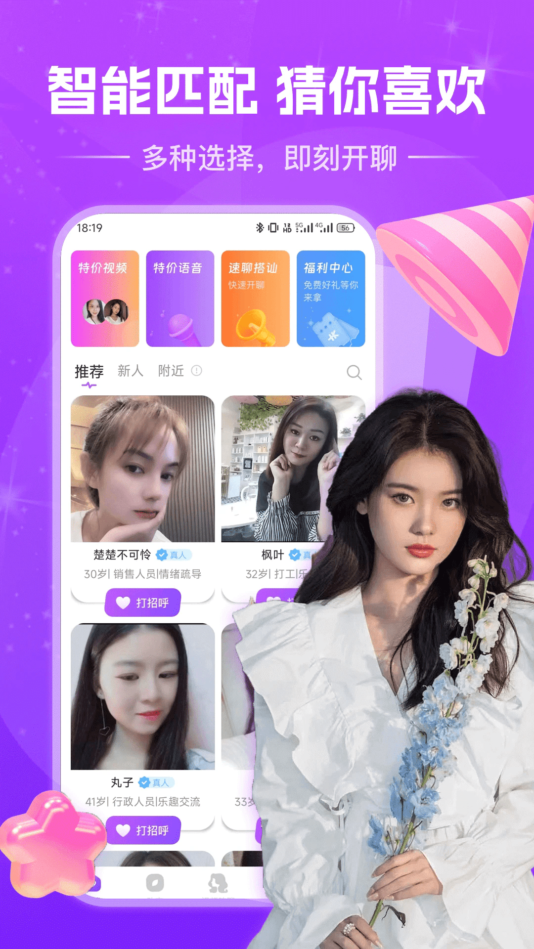 花夜app是一款本地真人交友软件,软件中支持视频语音聊天,在这里结识更多兴趣爱好相同的朋友,发布你的生活动态,让更多人了解你靠近你,消息回复极速不等待,对软件感兴趣的话不妨点击下载试试!