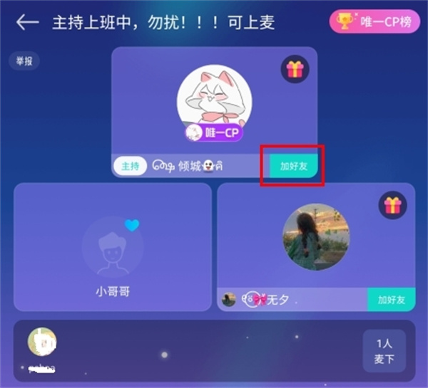 2、用户可以点击该用户中右下角的加好友按钮,就可以直接加好友了。