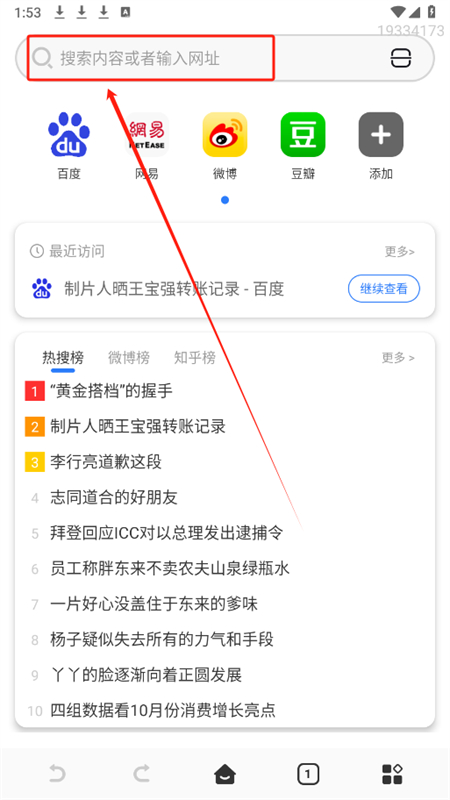 2、打开软件进入,在上方搜索框输入搜索内容或者输入网址