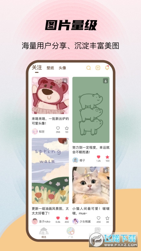 壁纸图片量级,海量用户分享的美图,软件为大家沉淀了丰富的美图,随你挑选。