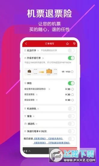●增值服务——可在机票预订页面、增值服务购买页面、订单管理页面三个通道实现您行程中行李、餐食等附加服务的选购。