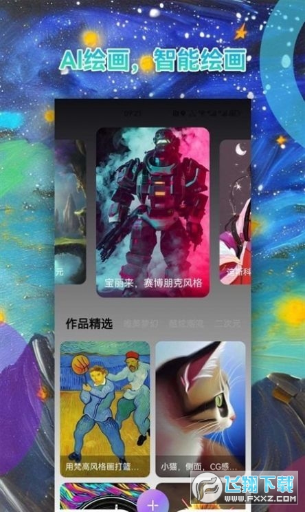 2、输入关键词,APP里头的AI技术能您的想象力,将枯燥无味的关键词瞬间变成创意十足的画作。
