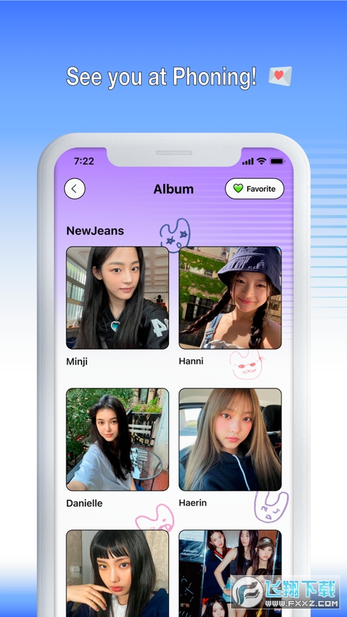 phoning安卓最新版本是一款专为newjeans粉丝打造的社交软件,可以了解女团的最新动态,在线互动,一键分享,认识更多小伙伴,还有超多明星周边商品可供用户们进行挑选,可以让自己的社交圈变得更大,为你喜欢的人物进行应援,可以和来自世界各地的朋友聊天。