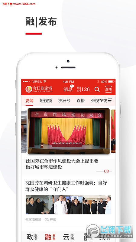 1、今日张家港软件增加云沙洲、融发布、i生活、政服务等版块;