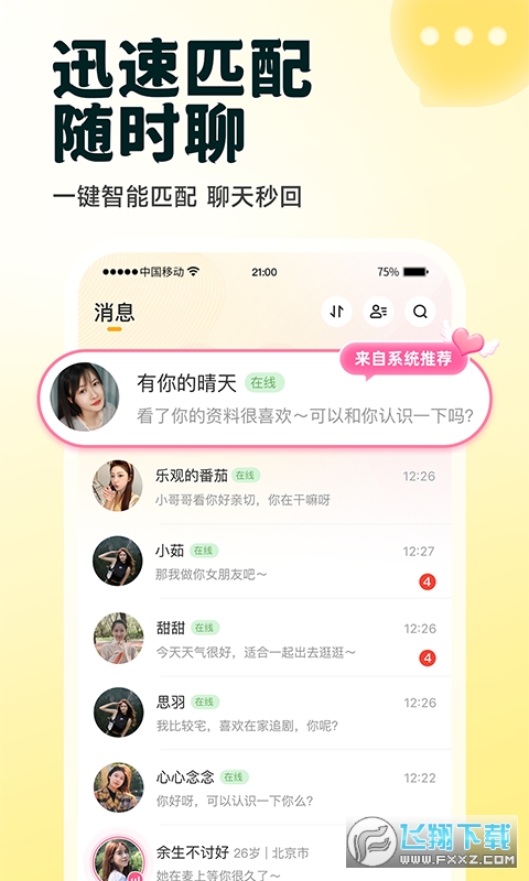 - 「在线速配」心动在线,聊天秒回,再也不愁打招呼没人回啦