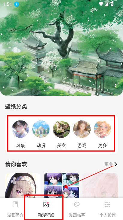 进入漫画壁纸,可以浏览各种风格的次元壁纸
