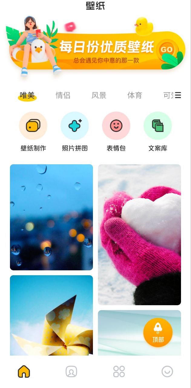 该软件的主要用途是为用户提供丰富的手机壁纸资源,同时也具备实用的切换和管理功能。用户不仅可以浏览不同的主题壁纸,还能轻松一键下载和设置为手机壁纸,让工作和休闲的体验更加愉悦。无论是工作中的轻松氛围,还是在家中休闲时光,可爱的壁纸都能为用户的生活增添色彩。此外,该应用还支持用户创建自己的壁纸收藏夹,方便随时查看和更换,极大提升了用户的使用效率和乐趣。通过整合线上壁纸资源,主题壁纸鸭为用户提供了一种低门槛的个性化选择。