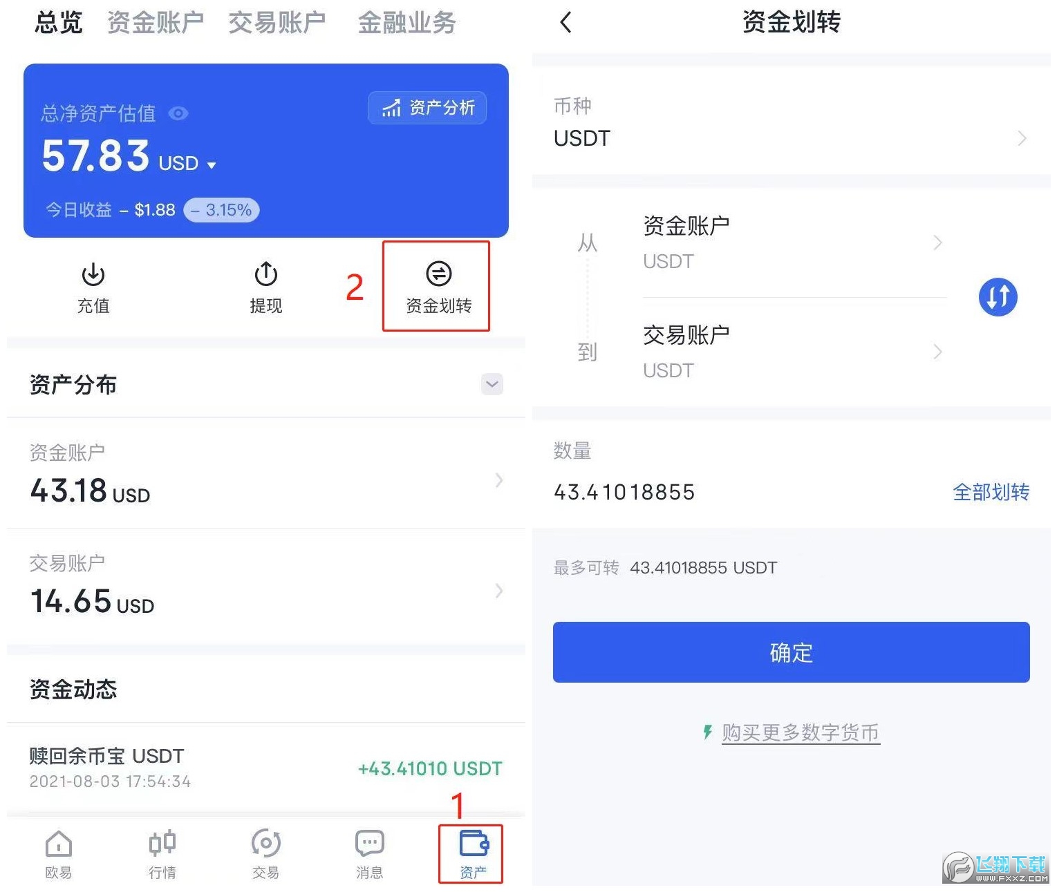 方法一:进入“资产”页面——选择资金划转,进行操作