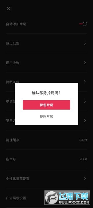 4、关闭自动添加片尾功能后,点击“×”退出设置