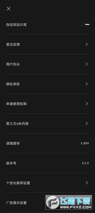 3、打开剪映设置界面,然后点击“自动添加片尾”右侧的按钮关闭自动添加片尾功能