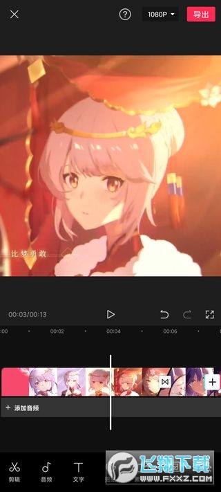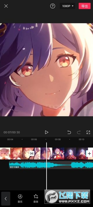 4、歌曲下载完毕后点击“使用”,这时剪映app会重新打开视频剪辑界面,注意查看,音频歌曲添加到了视频轨道下方