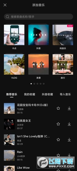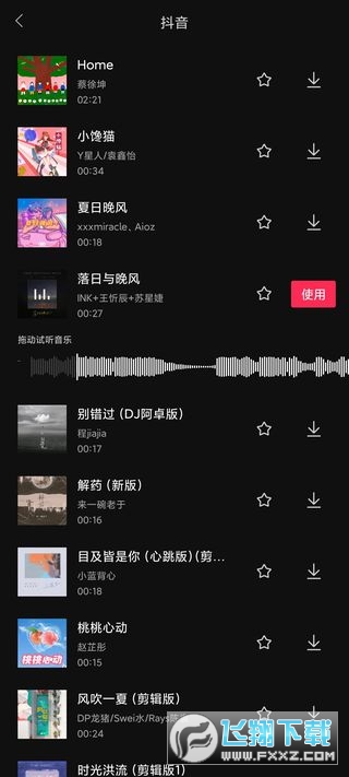 3、这里我们以“抖音”这一类为例子,点击抖音音乐界面,点击歌曲右侧的“下载”按钮