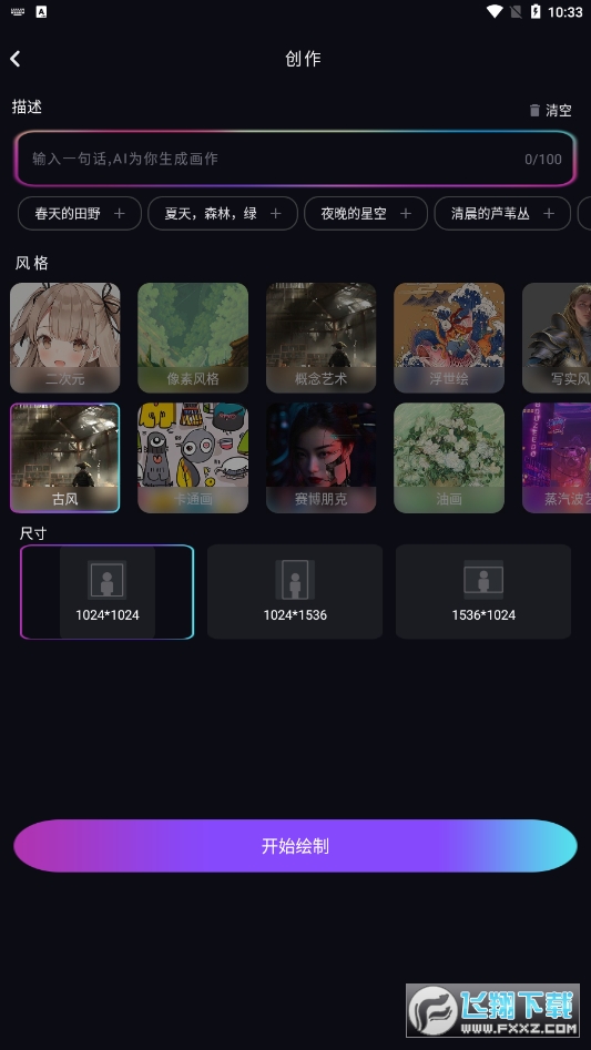 3、只要输入描述,再选择您想要的风格,AI就可以自动帮您生成画作