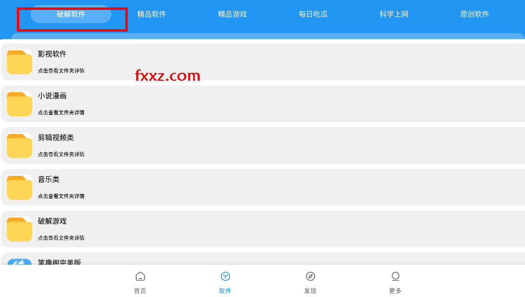 3、点看自己感兴趣的软件分类,查看软件详情;